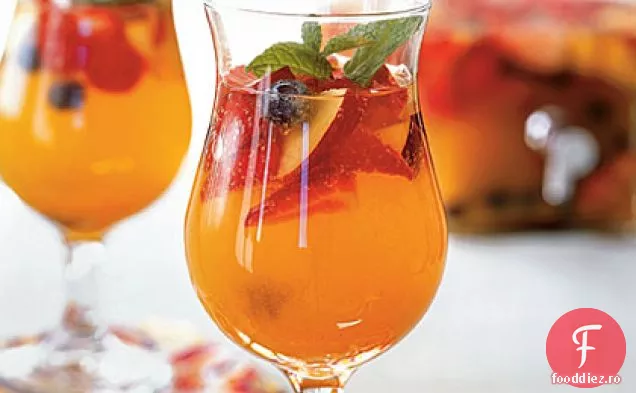 Combinați primele 6 ingrediente într-un ulcior mare și răciți cel puțin 2 ore. Se amestecă 1 cană de nectar și vin.