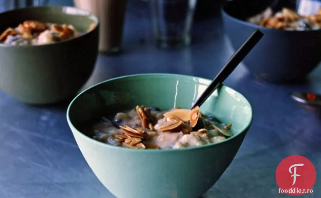 Se amestecă amestecul de migdale în budinca de orez și se servește cald.