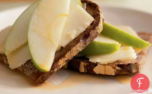Așezați 2 felii de mere pe fiecare jumătate de pâine.