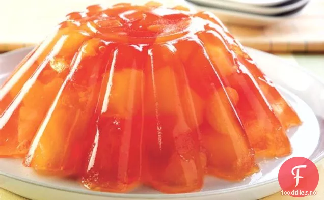 Adăugați apă clocotită în amestecul de gelatină într-un castron mare; se amestecă 2 min. până la dizolvarea completă.