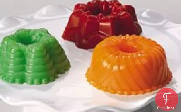 Desfaceți gelatina pe tavă. Ridicați fiecare matriță cu spatulă pe plăci.Notă: tigaia pentru brioșe bundt folosită în această rețetă, precum și alte articole de uz casnic, este disponibilă în catalogul Betty Crocker. Faceți clic pe linkul "Catalog cumpărături" din partea de sus a acestei pagini pentru a cumpăra Betty Crocker online, apoi căutați: mini bundt.