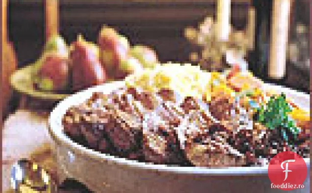 Tăiați sânii de rață transversal în felii groase de 1/4 inch și aranjați-le pe un platou încălzit.