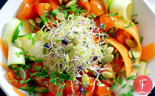 Salata de Linguini de morcovi și dovlecei este o fără gluten, prietenos cu fodmap, întreg 30 și vegan felul principal. Această rețetă servește 1 și costă 5,66 USD pe porție. O porție din acest fel de mâncare conține în jur 20g de proteine, 65g de grăsime, și un total de 844 calorii. 101 persoane au încercat și le-a plăcut această rețetă. Un amestec de ulei de măsline extravirgin, muguri, câteva crenguțe de arpagic și o mână de alte ingrediente sunt tot ce trebuie pentru a face această rețetă atât de aromată. Pentru a consuma dovleceii, puteți urma acest fel principal cu Zucchini Desert Squares ca desert. De la preparare la farfurie, această rețetă durează aproximativ 45 minute. Toate lucrurile luate în considerare, am decis această rețetă merită un scor spoonacular de 99%. Acest scor este extraordinar. Rețete similare includ Salată de Linguini de morcovi și dovlecei, Hummus Linguini cu dovlecei {exercițiu provocare}, și Salată de dovlecei și morcovi.