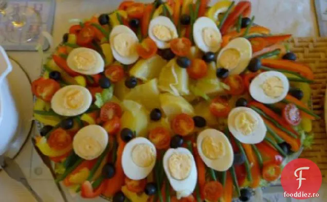 Salata de somon afumat (în stil Nicoise) ar putea fi doar felul principal pe care îl căutați. O porție conține 405 calorii, 18g de proteine, și 22g de grăsime. Această rețetă servește 6 și costă 3,53 USD pe porție. 1 persoană a fost impresionată de această rețetă. Mergeți la magazin și ridicați măsline, fasole, cartofi și alte câteva lucruri pentru a le face astăzi. Pentru a consuma ouăle, puteți urma acest fel principal cu Tortul de roșii cu ciocolată al lui Rose Levy Beranbaum cu Ganache misterios ca desert. Este o opțiune bună dacă urmați un fără gluten, fără lactate și pescatarian dieta. De la preparare la farfurie, această rețetă ia în jur 25 minute. Toate lucrurile luate în considerare, am decis această rețetă merită un scor spoonacular de 81%. Acest scor este spectaculos. Încercați Salată De Somon Afumat Ni Arkosoise, Salată Nicoise De Somon Afumat Din Alaska Cu Alouette Feta Mărunțită, și Nicoise De Somon Afumat Din Alaska Cu Brânză Feta Mărunțită pentru rețete similare.