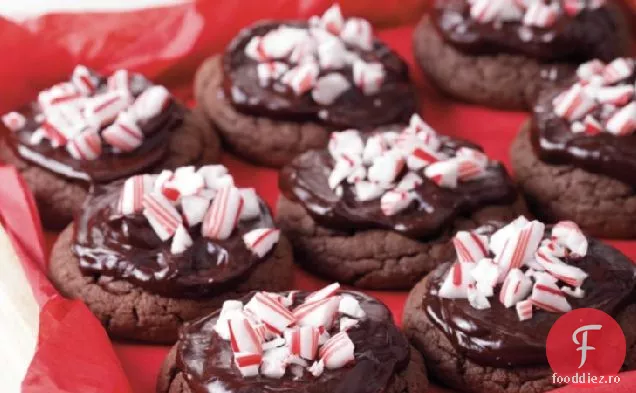 Întindeți amestecul de ciocolată peste fursecuri; se presară cu bomboane zdrobite.